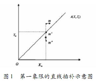被控對象的運動軌跡是由各種線型構(gòu)成, 如直線、 圓弧、 拋物線等, 最主要的便是直線和圓弧。為了實現(xiàn)軌跡控制必須進(jìn)行插補, 計算出中間點, 插補的任務(wù)實際上就是從軌跡起點到終點之間的數(shù)據(jù)密化工作。逐點比較法就是每走一步都要將工作點的瞬間坐標(biāo)與規(guī)定的運動軌跡進(jìn)行比較, 判斷偏差, 根據(jù)偏差確定下一步的進(jìn)給方向, 得到一個非常近似于規(guī)定軌跡的路線, 且最大誤差當(dāng)量不超過一個脈沖當(dāng)量[1]。