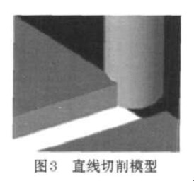 對(duì)于直線加工模型, 主要是定義加工的起點(diǎn)AA和終點(diǎn)B。移動(dòng)刀具的對(duì)刀點(diǎn)在AA和BB之間, 我們利用均勻直線插補(bǔ)算法求得; 刀具和毛坯重合部分, 可以借助對(duì)毛坯執(zhí)行布爾運(yùn)算生成, 以示零件被切削部分。模型如圖3所示。