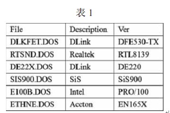 下面列出一些 DOS 客戶端網(wǎng)卡安裝常用的 NDIS 網(wǎng)絡(luò)卡驅(qū)動(dòng)程序文件名,如表 1所示