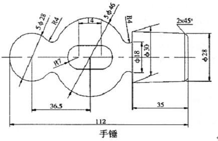 現以在 CK6136FANUC ( 程序系統(tǒng): Series Oi Mate- TC) 數控車床上車削仿形手錘( 毛坯:¢50 鋁棒料) 為例, 談談如何把工藝和編程進行有機的結合。