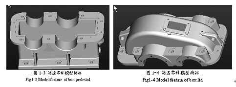 因為箱體構造雜亂,形成其特征的方法許多 考慮到箱座 箱蓋是一個殼體構造,而且它們沿安裝觸摸面的概括構造 尺度一樣,所以能夠將它們放在一同作為全體來規(guī)劃,完成后沿安裝面用平面切開后即得到上 下箱體,這樣規(guī)劃既簡略 便利又能確保后續(xù)的安裝順利進行