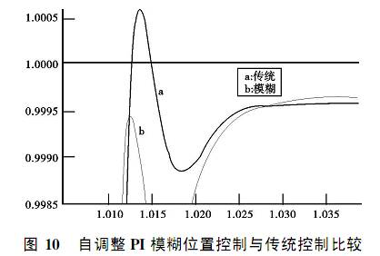 從仿真結(jié)果可以看出, 位置控制采用自調(diào)整$ kp 和$k i 的模糊控制器后,階躍響應(yīng)速度快, 超調(diào)小,可以適應(yīng)較大的負(fù)載,并且穩(wěn)態(tài)誤差小.