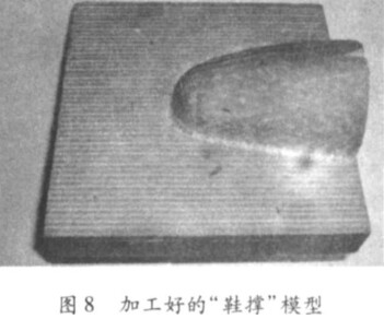 在實(shí)驗(yàn)室條件下 ,采用華中 ZJK7532A數(shù)控銑床 , R3的球頭銑刀及工程塑料進(jìn)行加工 ,完成了“ 鞋撐 ” 模型加工 ,曲面輪廓完整 ,說明建模和進(jìn)、退刀方法是正確的。加工好的零件如圖 8所示。